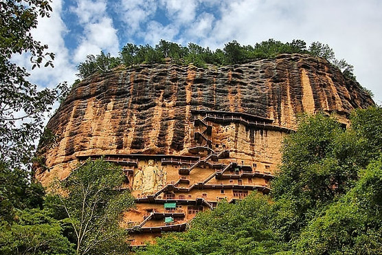 In which I have to say it is a beautiful mountain in Xiaolong Mountain at the east end of Qinling Mountain in China. 1.742 meters above sea level and 30 kilometers away from Tianshui Train Station. Though only 142 meters high, the mountain has a strange shape and towering peak like wheat stacks, known as Maiji (wheat pile in Chinese). There are cliffs to the southwest of the summit. The famous Maijishan Grottoes were cut on cliffs, some 20-30 meters, and some 70-80 meters away from Maiji mountain base. It has been rare among Chinese caves to cut nearly 1,000 caves and Buddha statues in such precipitous cliffs.