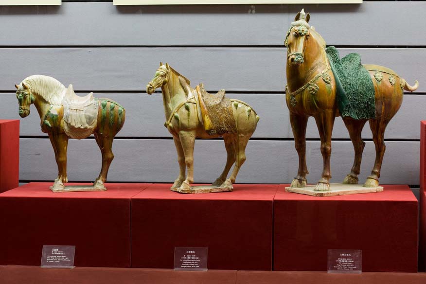 The Permanent Exhibition Area mainly displays the ancient history of Shaanxi. Representative pieces from all periods have been selected to show the development of civilization in this region. The exhibition area is 4,600 square metres. It includes three exhibition rooms, divided into seven parts including the history of Zhou, Qin, Han, Wei and Jin Dynasties, North and South Dynasties, Sui and Tang dynasties plus Song, Yuan, Ming, Qing. The superlative 2,000 selected objects include: painted Neolithic ceramics reflecting early people's living conditions and their pursuit of vibrant art forms, bronzes reflecting the rise of Zhou people, bronze weapons including swords, and statuary of horses and soldiers, reflecting the way in which Qin unified all under heaven, Tang-dynasty gold and silver objects and tri-coloured glazed pottery of the Tang dynasty, which totally reflected the most flourishing period of feudal glory. All of this is accompanied by models of archaeological sites, and drawings, and photographs, these works are systematically exhibit the ancient history of Shaanxi from 150,000 years ago to the year 1840.