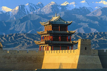 The Jiayuguan Pass: This Ming Dynasty fort guards the strategic Jiayuguan pass, at the western end of the Great Wall – this was the last section built by the Ming Dynasty. It was built in 1372, and subsequently enlarged and strengthened, and was known as 'the strongest pass under heaven'.