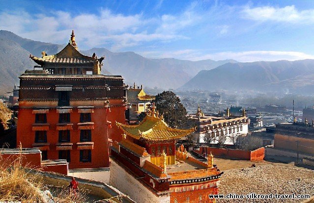 Labrang Monastery: The Labrang Monastery is located at the foot of the Phoenix Mountain, northwest of Xiahe County in Gannan Tibetan Nationality Autonomous Prefecture, Gansu Province. As a propitious place in the hearts of the Tibetans, it stands by the Daxia River and faces the Dragon Mountain. A long time ago, this place was a boundless sea, which over time had turned into the present landscape. There is a beautiful legend that tells about how the Dragon Mountain, Phoenix Mountain, and the Daxia River were formed.