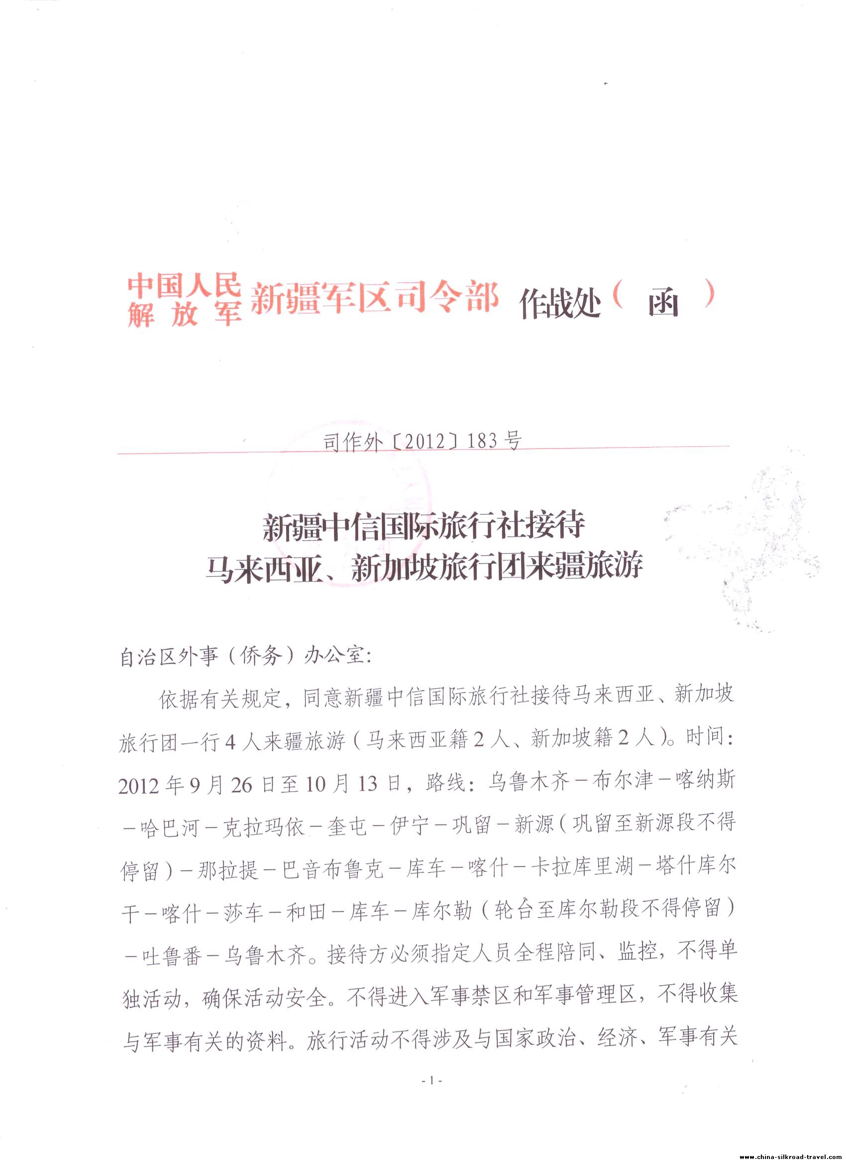 Xinjiang Travel Permit